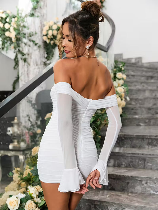 Off-Shoulder Ruched Mesh Bodycon Dress