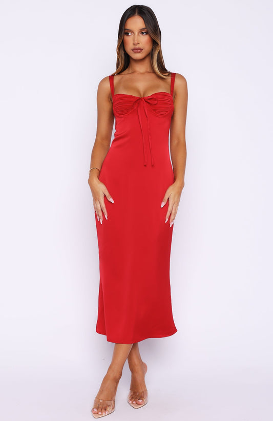 Devoted Love Bow Maxi Dress - Red